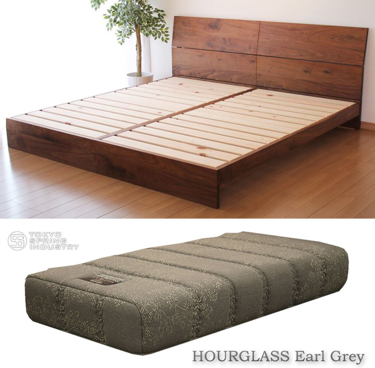 ウォールナット無垢材フレームに、当店人気No.1マットレスをセットした、2台セットの豪華ベッドです。