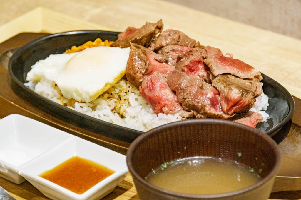 「本気のステーキ青木」の『ステーキガーリックライス』(ららぽーと門真)【いばつーグルメ】