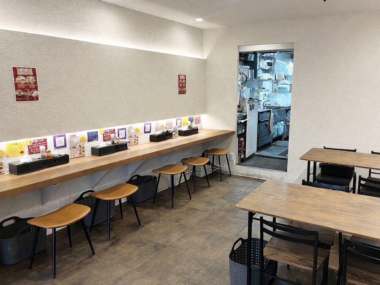 店内はカウンター席+テーブル席3卓で、ベビーカーも横付けのまま入店できそうな広さです。
