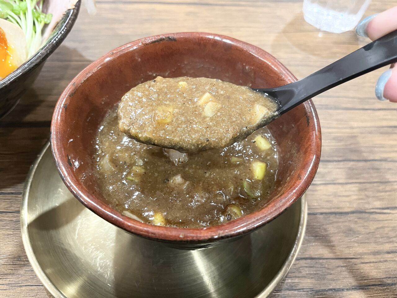 「ドブ付け禁止」と言われるほどドロドロで、つけ汁のおかわりは有料(300円)です。