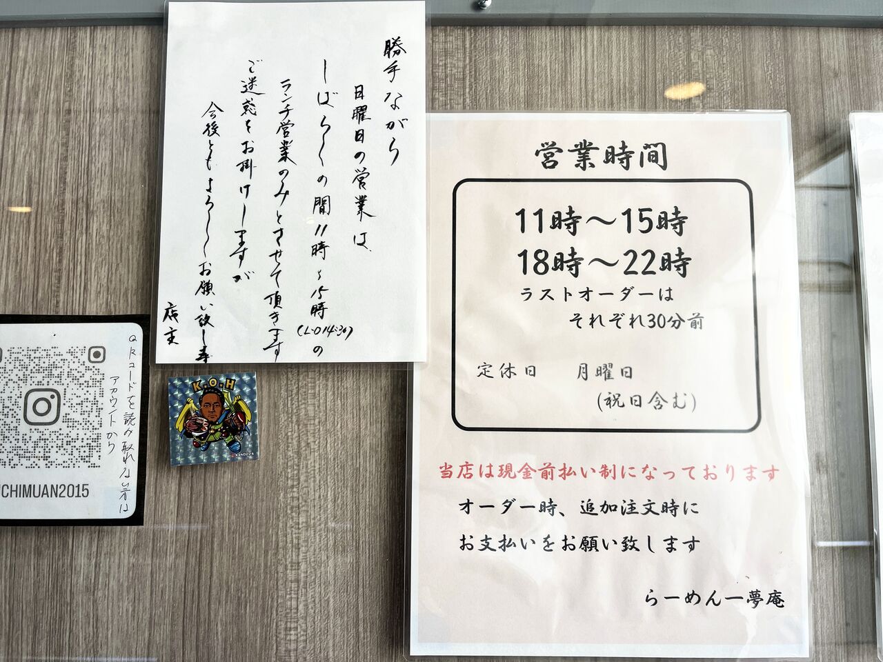 取材時は日曜日午後の営業に関する貼紙がありましたので、訪問の際は事前に確認するのがおすすめです。