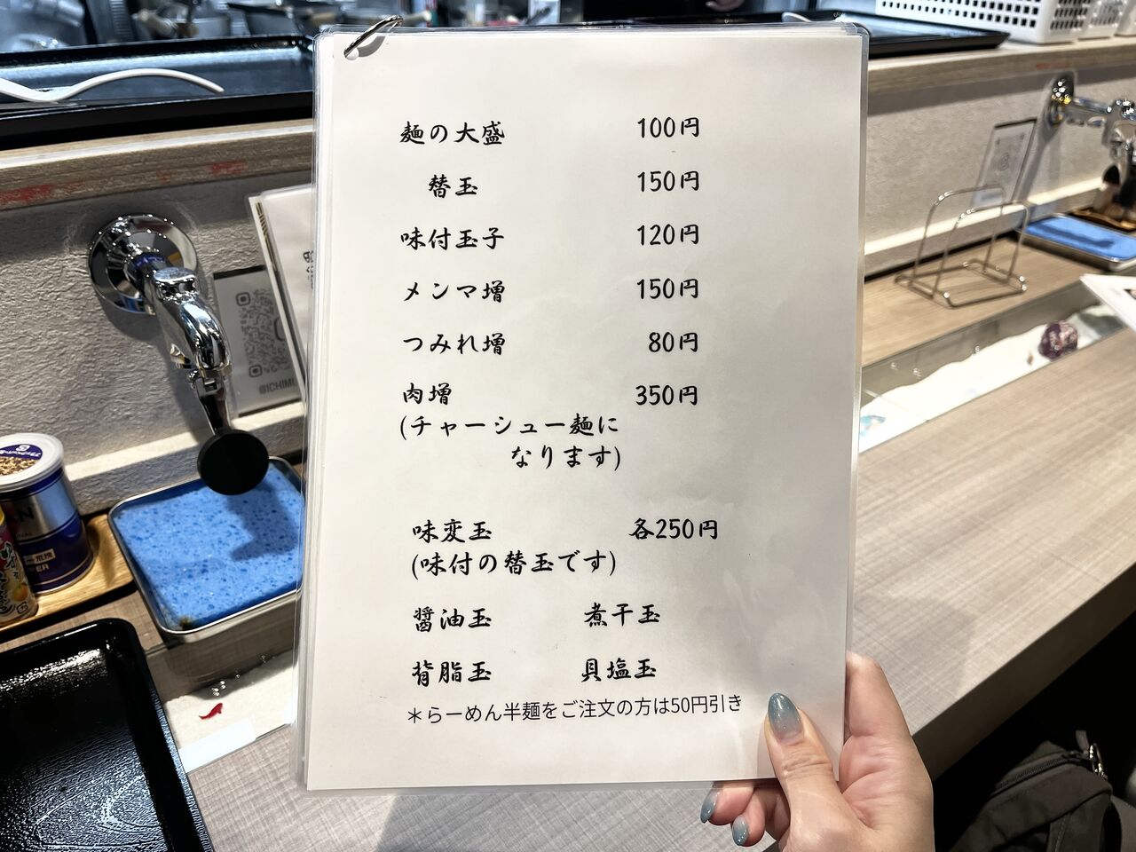 味付きの替玉も個性的で、つい惹かれます。