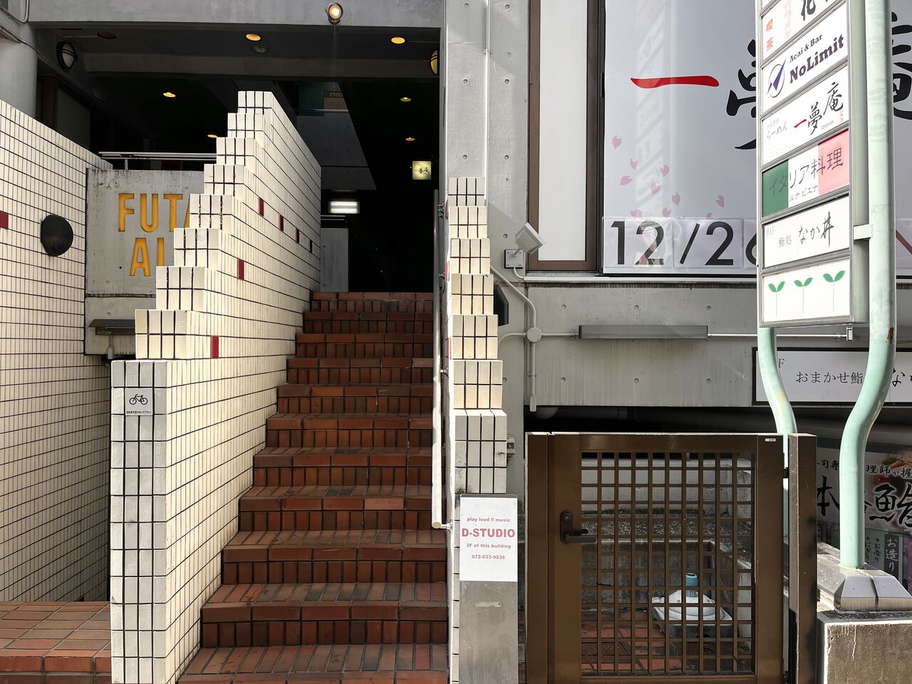 お店へは正面の階段を上がり、2階右手が入口です。