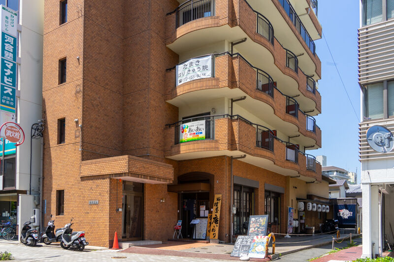 建物の奥まった位置、この写真でいうと右側にあります。