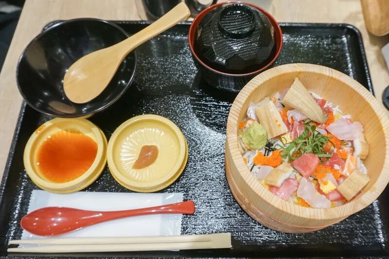 本場の寿司屋が織りなす海鮮丼専門店のひつまぶしは、マグロや白身など季節ごとの食材がどっさり10種類以上入っていて超豪華。