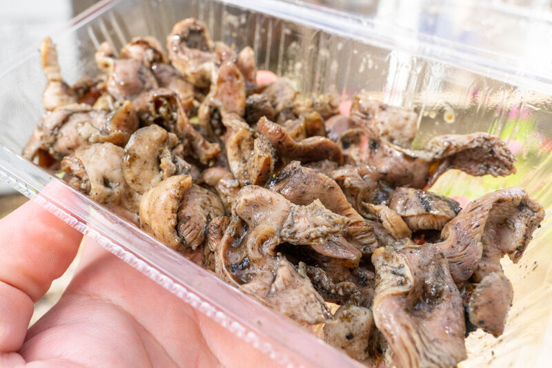 ずり皮も買ったんですが、この量で216円。これまた炭火がきいたおいしいずり皮。食感コリッコリ!