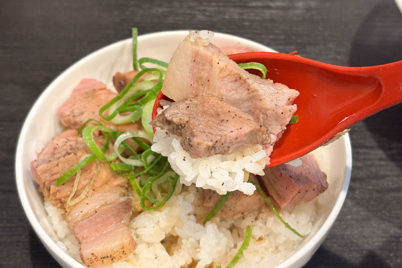 チャーシューは白ごはんと相性抜群で、ご飯にかかっているタレと合わせると食べる手が止まりません。