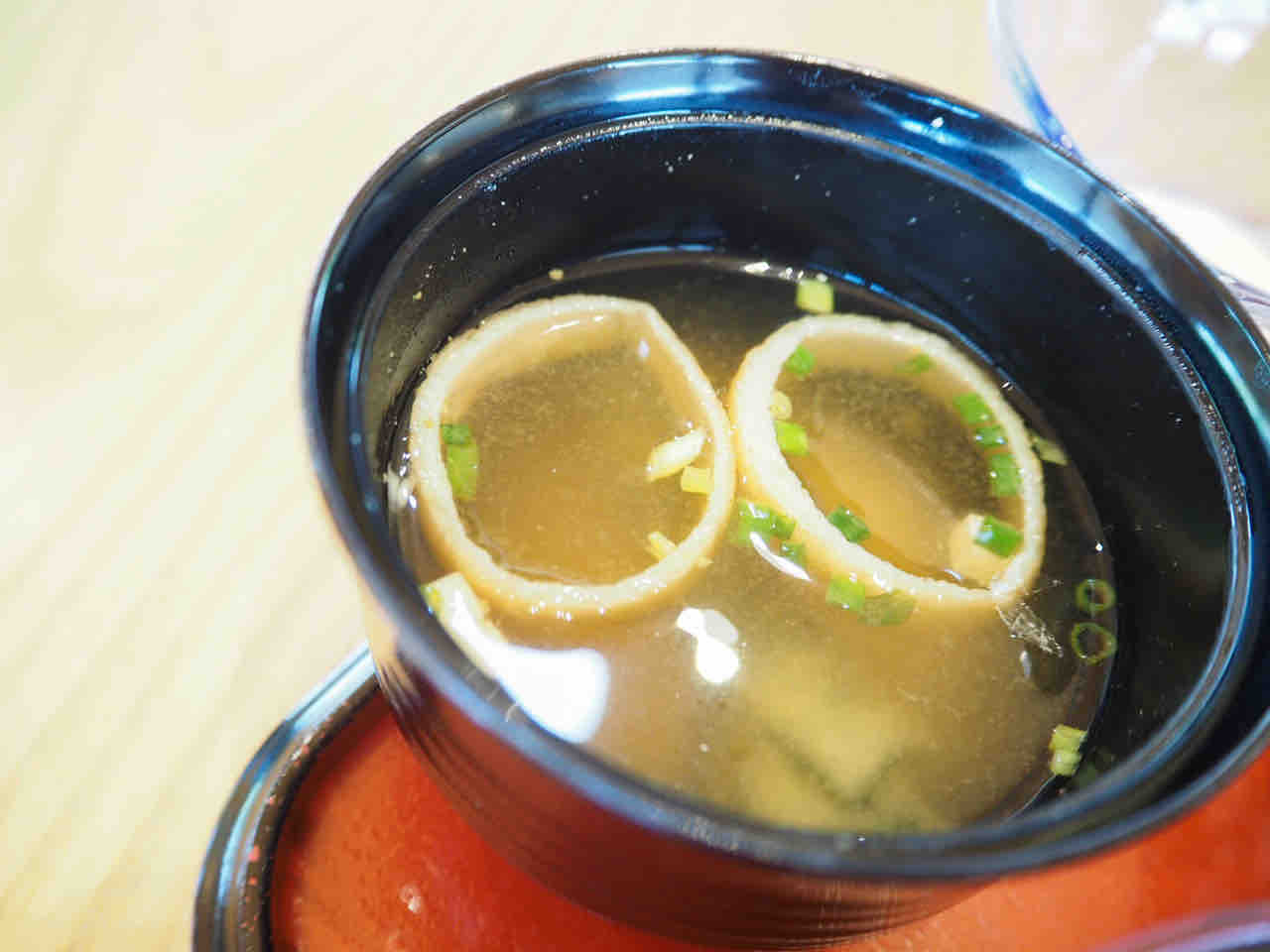 流行る気持ちを抑えて、まずはお味噌汁でお腹と心を落ち着かせます。
