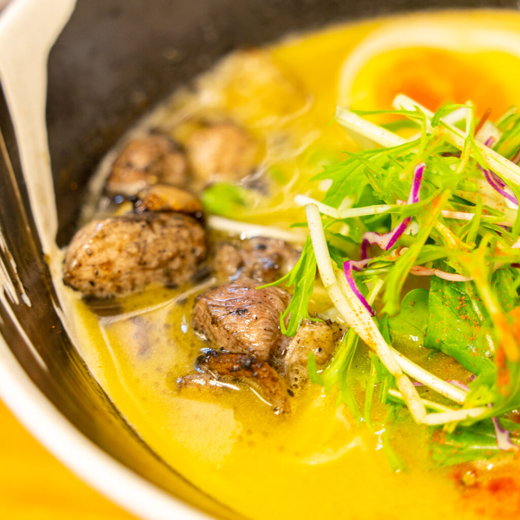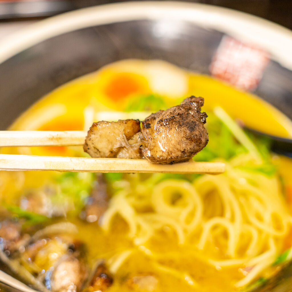 これの歯ごたえがプリップリでして、良い鶏を食べている感がすごい。そして炭の香りをまとっているので、スープをまぜるとスープにも広がる香ばしさ。なんやこのスープ最強やん。