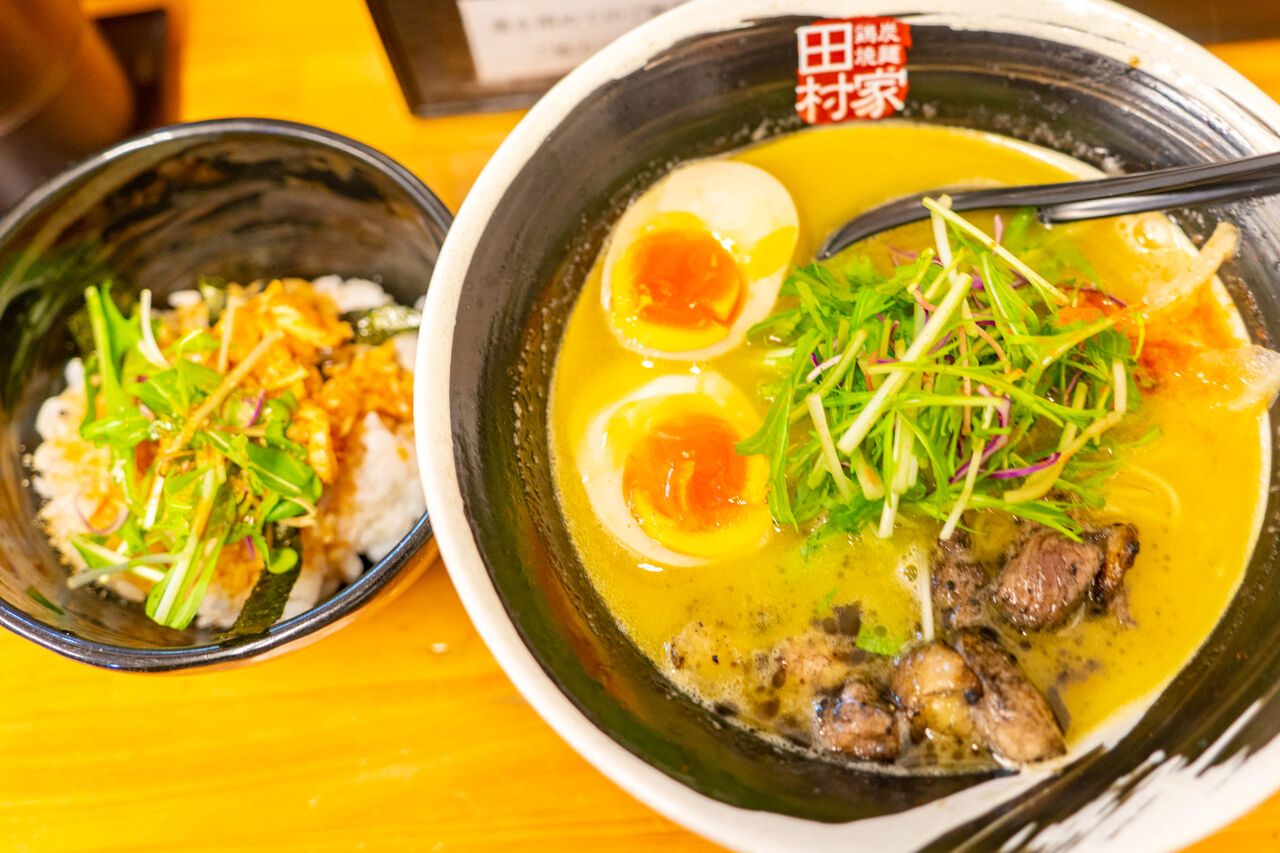 「田村家」の『鶏炭焼麺(煮玉子入)』(茨木市園田町)【いばつーグルメ】