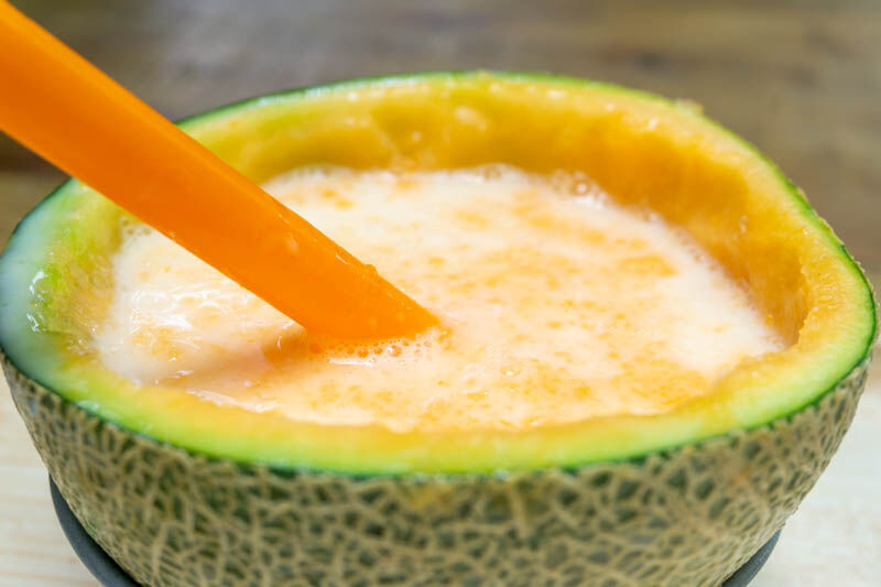最後は別添えのソースも全部入れてメロンミルクジュースとしていただきます。