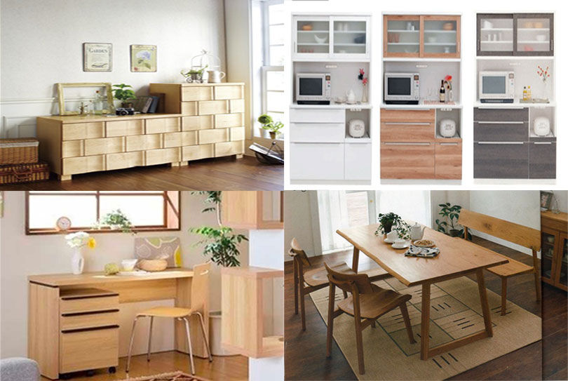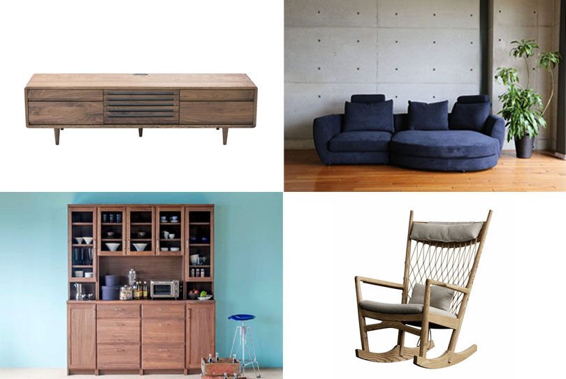 国産のものが多く、カリモクや飛騨高山の家具が中心です。(※現在は仮店舗です)