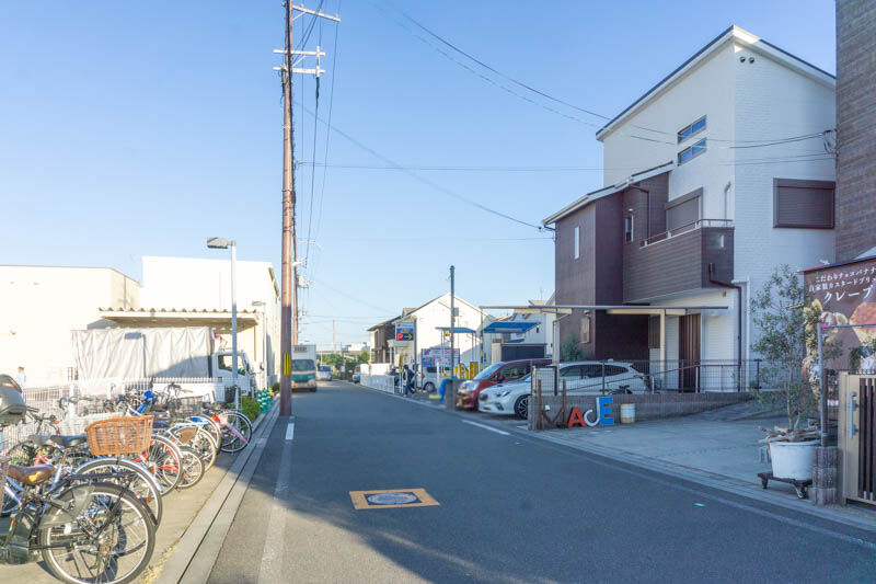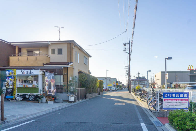 キッチンカーに背を向けると、ちょうどダイワサイクルの真裏でして、他にも万代や、マクドナルド、キリン堂、セブンイレブン、スターバックスなどがある場所の裏あたり。