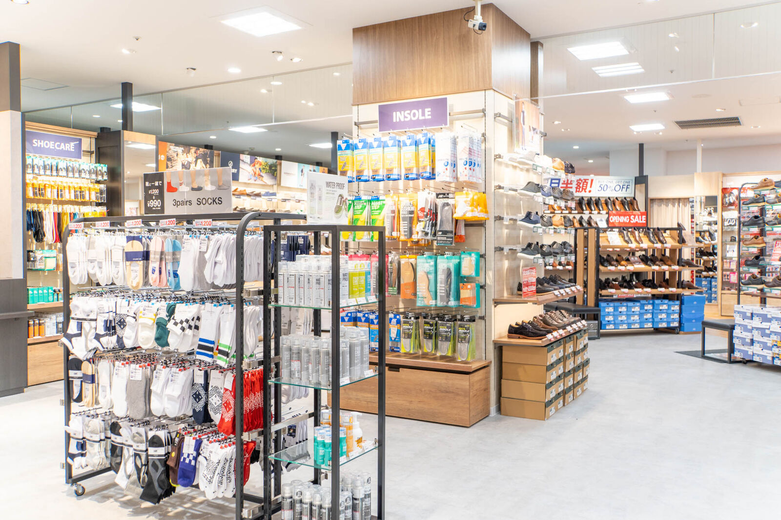 今まで通り隣には「ABC-MART」の店舗も。こちらは各種ブランドの靴、クリーナーなどのお手入れ用品があります。