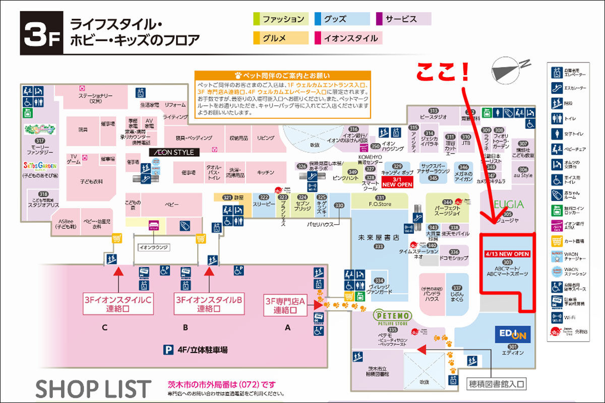 住所 大阪府茨木市松ヶ本町8-30-1 イオンモール茨木3階