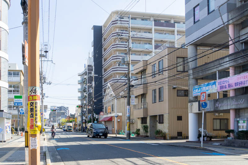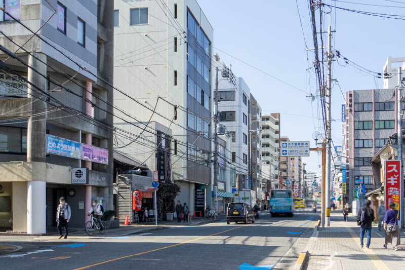 反対方向に行くと茨木市役所があり、ずっと進むと阪急茨木市駅へ。