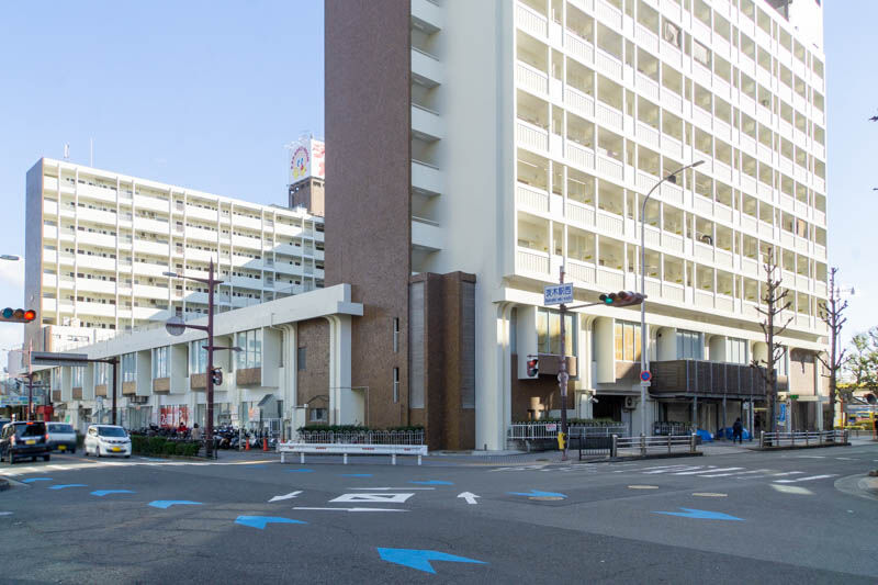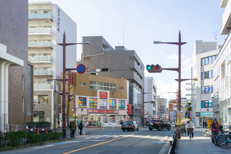 反対方向に行くと、茨木市役所などがあり阪急茨木市駅へ。
