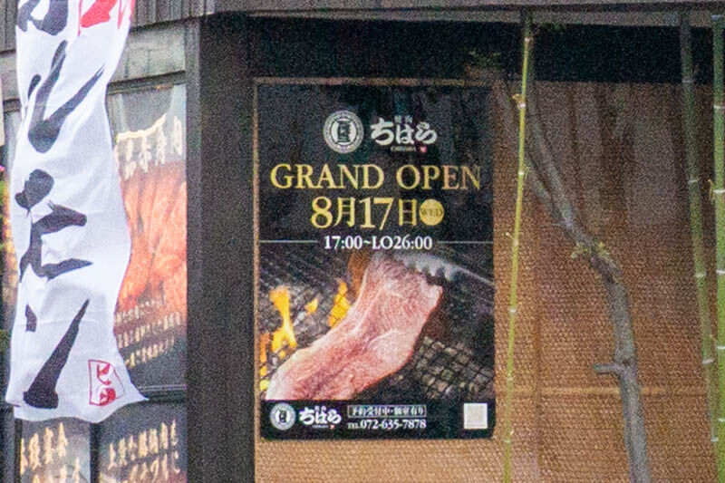 阪急茨木市駅ちかくにつくってた「焼肉ちはら」がオープンしてる