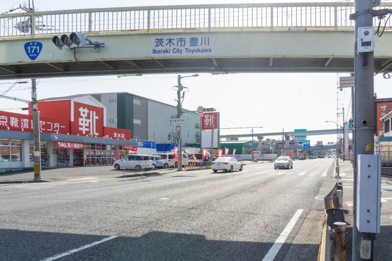 こっちに行くと、キコーナタウンや一蘭、不二家などがあり茨木IC方面。