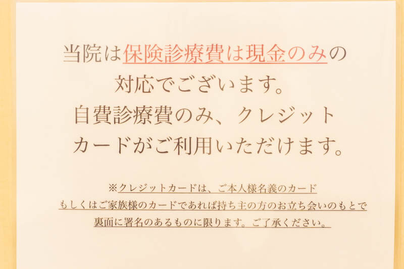 保険診療費は現金のみで、自費診療費のみクレジットカードが利用できるようなので要注意。