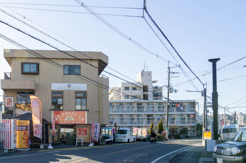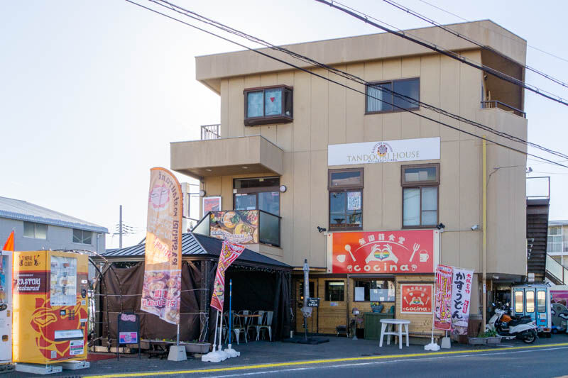 自販機は2022年7月に移転オープンした「カストリーレストラン」(2階)の建物の前にあります。ちなみに1階には同年6月に移転プレオープンした「無国籍食堂 cocina」が。
