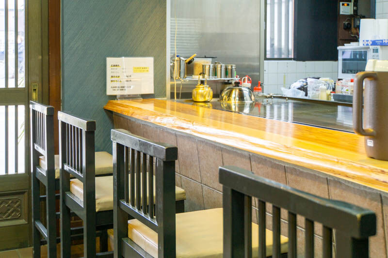 カウンター席とテーブル席があり、カウンター席だと目の前の鉄板で焼いている様子を見ることができます。