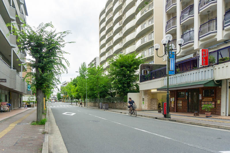 反対方向に行くと、踏切を超えて大正川などがあり、千里丘の方面。