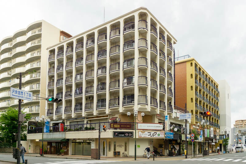 建物全体でみるとこんな感じ。2階の一番左側に店舗が見えています。