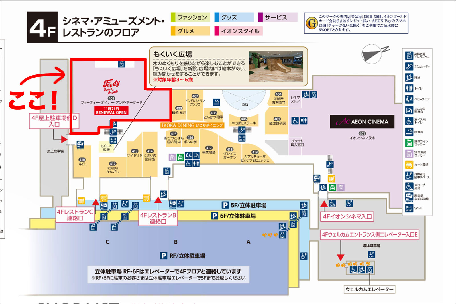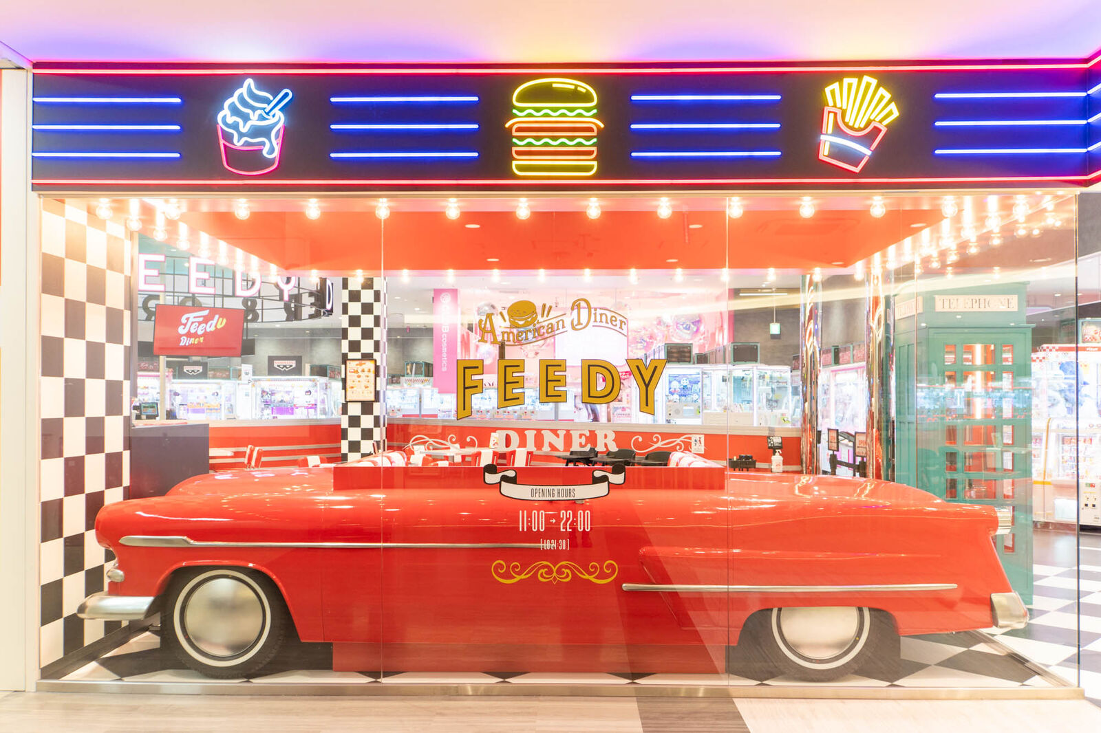 以前あった「モーリーファンタジーf」が、アメリカンダイナーをモチーフにした飲食区画併設の大型複合アミューズメント施設『Feedy Diner&Arcade』へリニューアルしたんだそう。