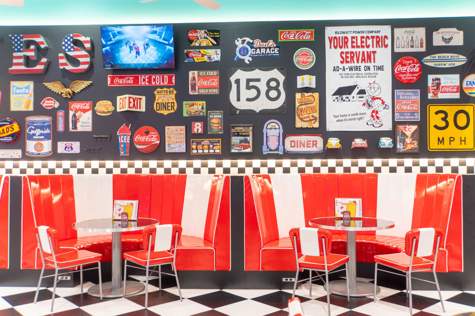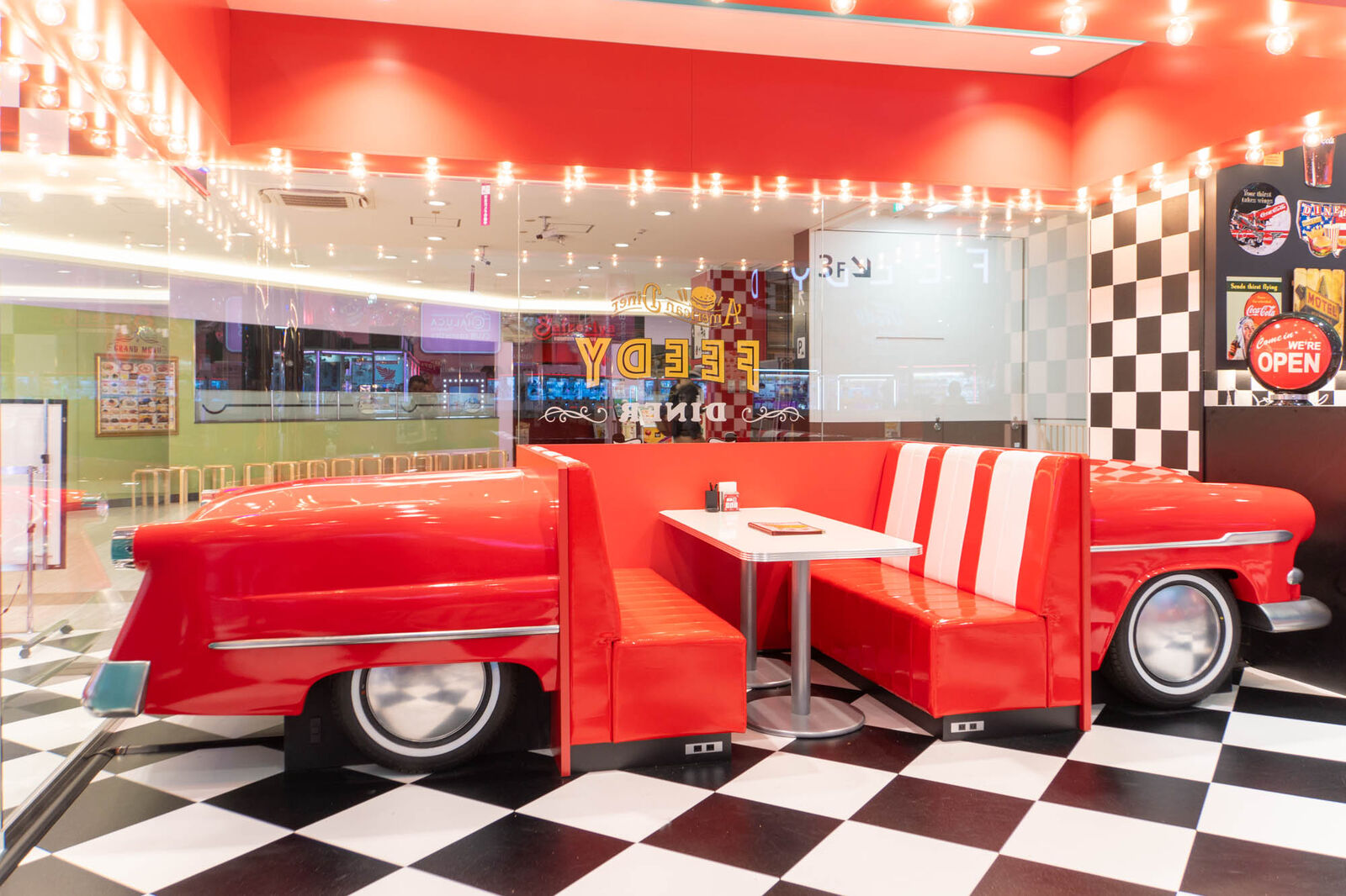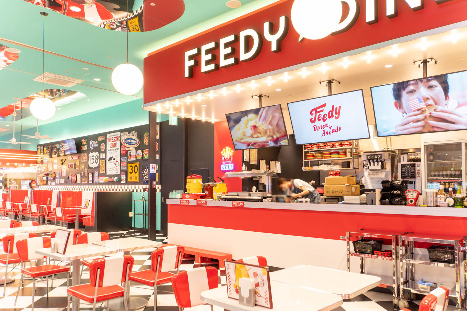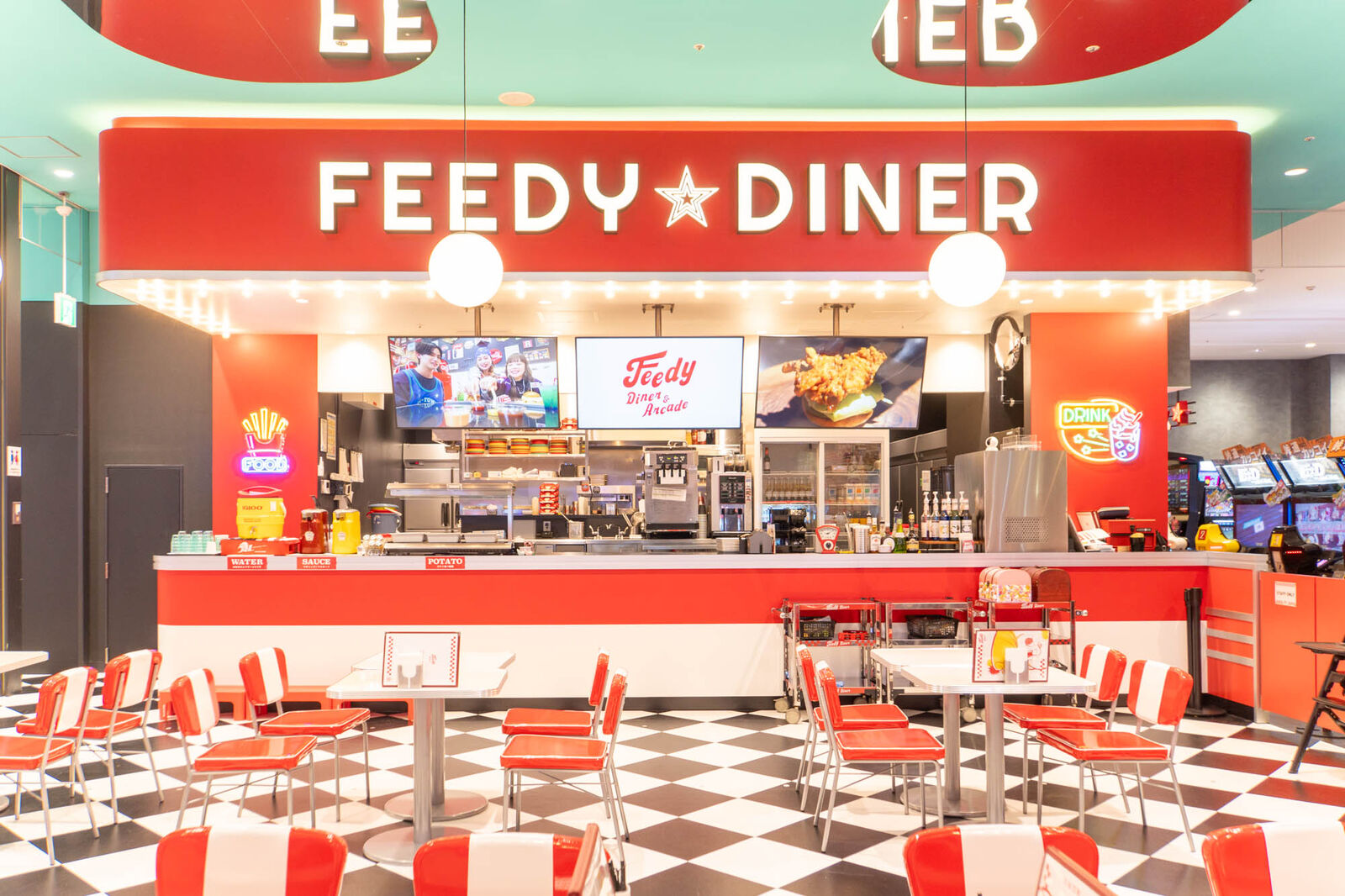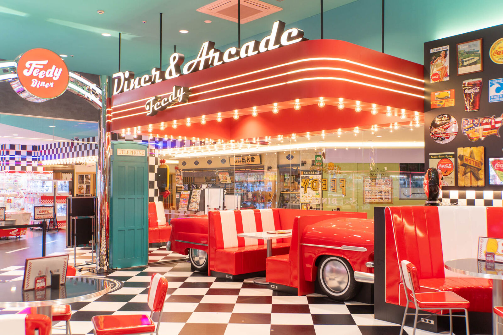 「Feedy Diner&Arcade」は、アメリカンダイナーをイメージした店内で、どこを撮影しても絵になるデザインが特徴なんだとか。