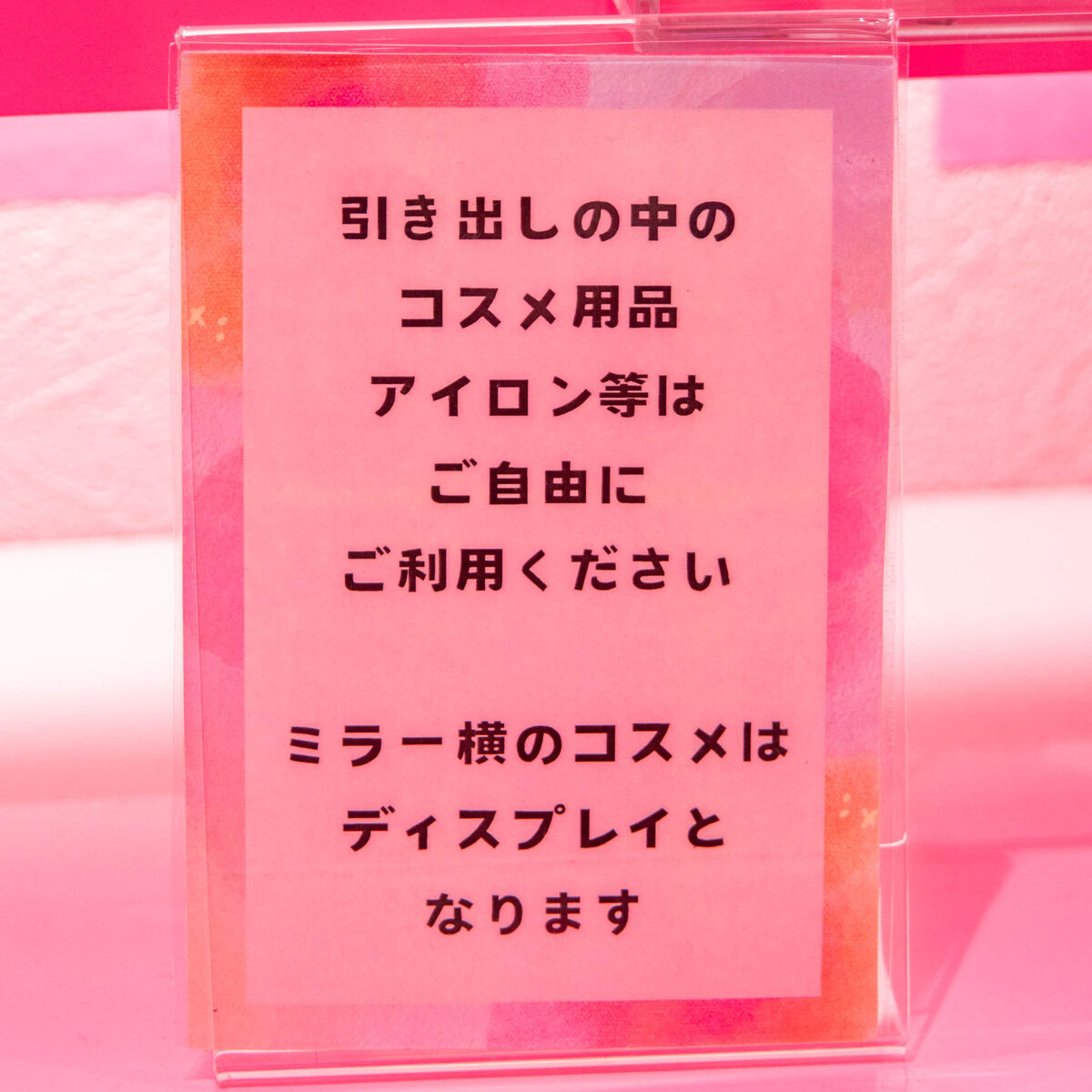 なんと、引き出しの中にあるコスメ用品とヘアアイロンが無料で利用できるとのこと。