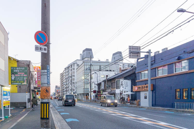 反対方向に行くと、イオンモール茨木やかっぱ寿司などがあり、千里丘方面。