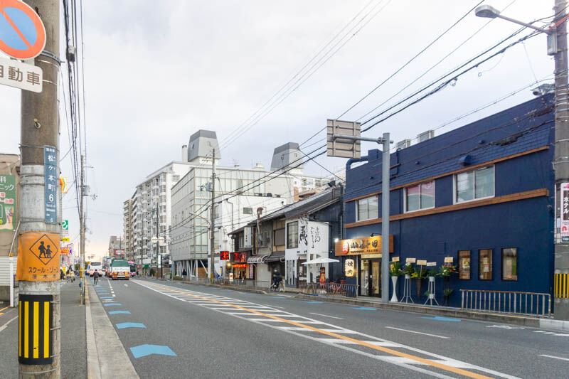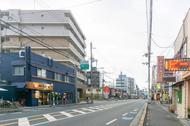 反対方向に行くと、イオンモール茨木やかっぱ寿司などがあり、千里丘方面。