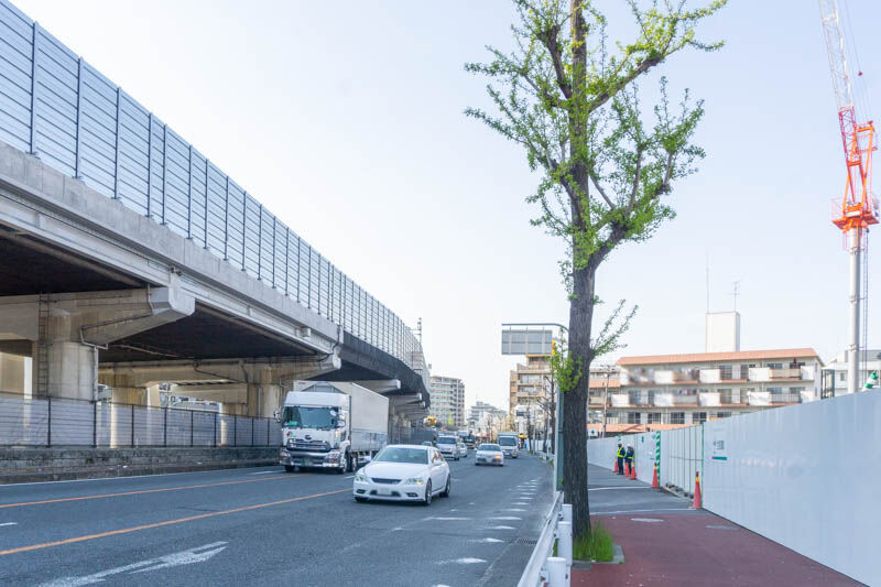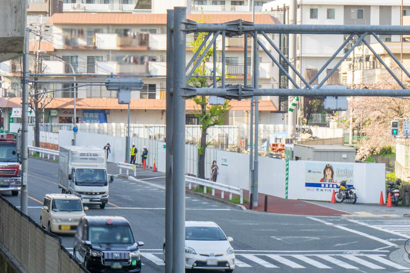 歩道橋の上から見た工事現場。