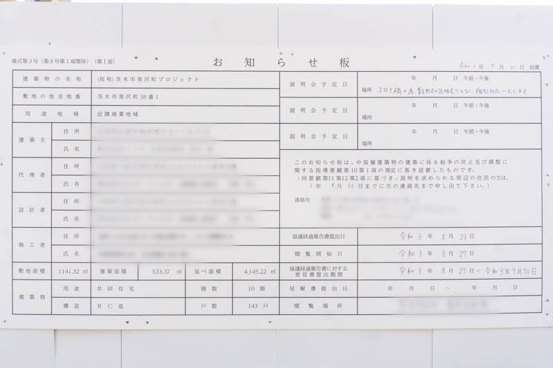 中環ぞい美沢町に「(仮称)茨木市美沢町プロジェクト」って工事してる。学生寮ができるみたい