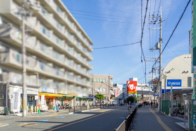 反対方向に行くと、FRESCOや大阪行岡医療大学などがあり、JR総持寺駅方面。