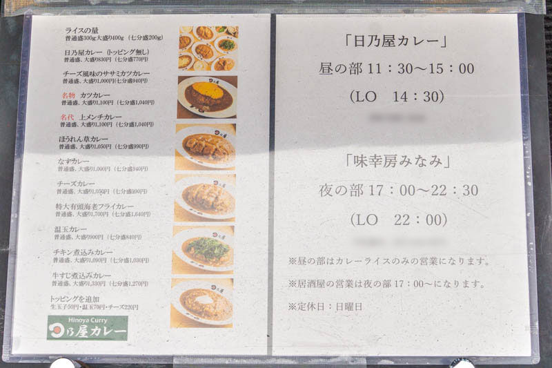 お昼は「日乃屋カレー」としてカレーライスのみの営業、夜は「味幸房 みなみ」として営業するスタイルなんだとか。