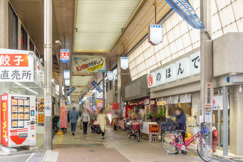 反対方向に行くと、たつみやや鼓月などがあり、阪急茨木市駅の方へ。