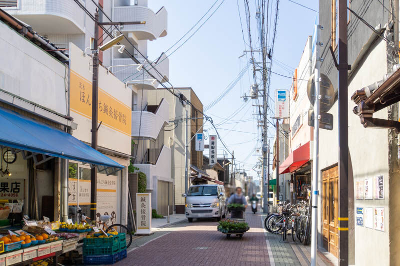 こっちに行くと、阪急本通商店街。