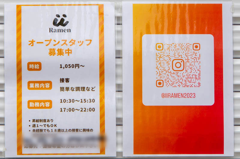 Instagramによると、「iiRamen」というこってりラーメンのお店が4月にオープン予定とのこと。内装工事も進んでいる模様。