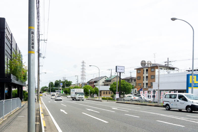 反対方向に行くと、キャタピラー教習所や良品買館などがあり茨木ICへ。
