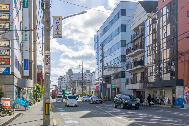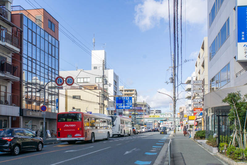こっちに行くと、茨木郵便局や茨木警察署、マクドナルドなどがある方面。