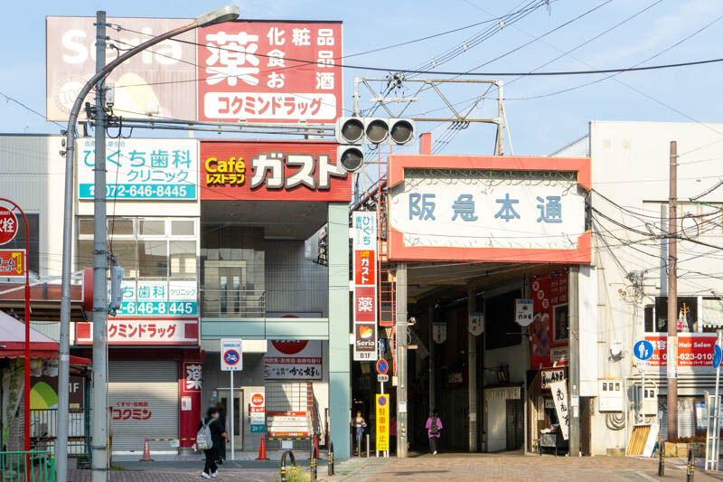 こっちに行って交差点を右に行くと、阪急茨木市駅のバスロータリー。