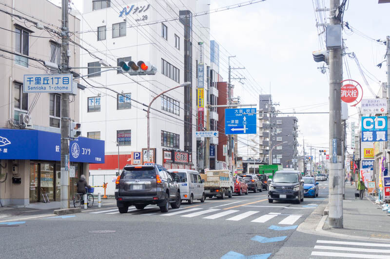 こっちに行くと、ジョーシンやリニューアルオープンしたココカラファイン、麺や 紡などがあり茨木市方面。