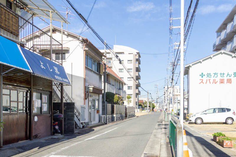 反対方向に行くと、住宅街が続いて小川町の交差点へ出まして、右へ進むと立命館大学や岩倉公園などがある方面。
