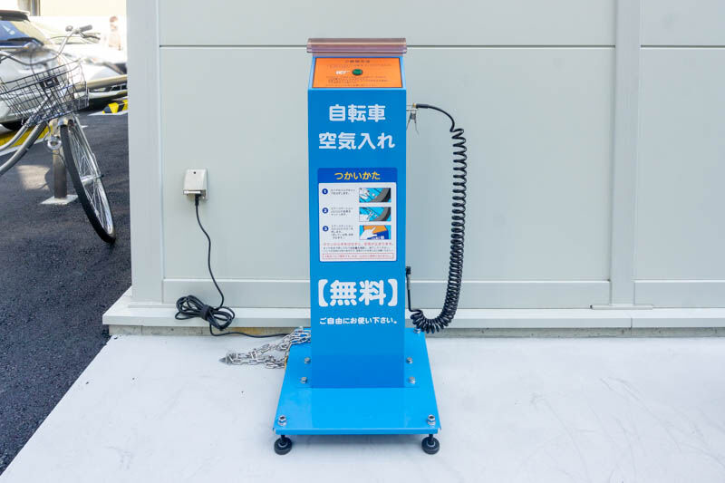 駐輪場には無料の空気入れもありました。