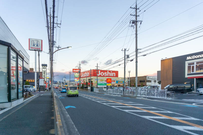 反対方向に行くと、ジョーシンや丸源ラーメンなどがあり、茨木ICや国道171号線の方面。