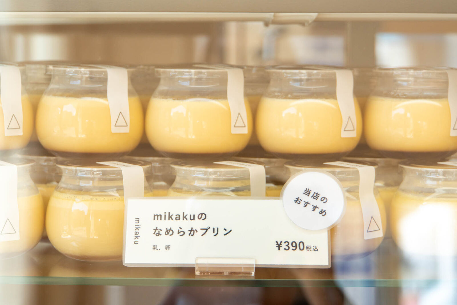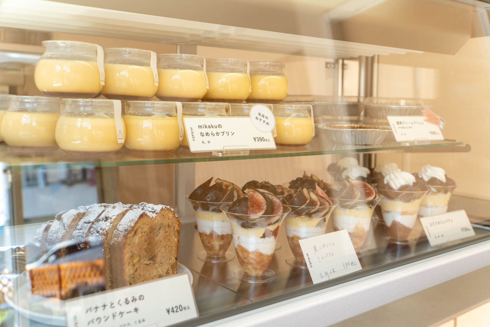 ショーケースの商品はテイクアウト用でして、生菓子や焼き菓子などが揃っています。なかでもプリンがお店のオススメだとか!