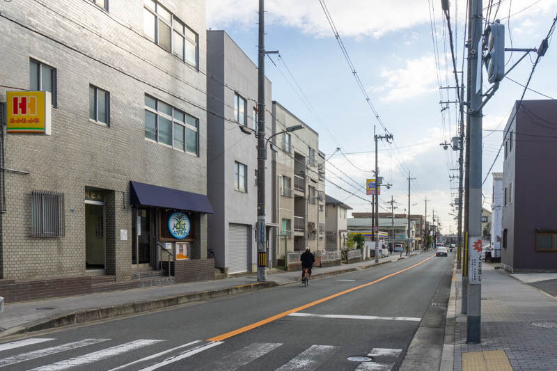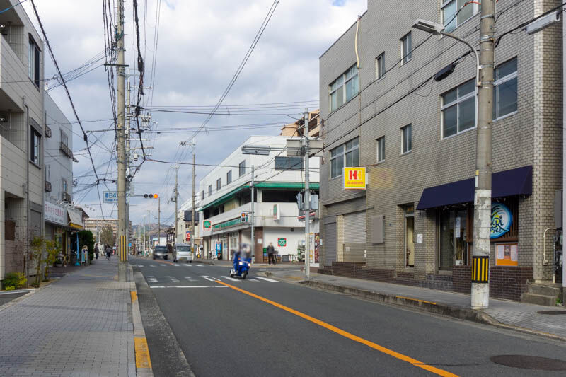 こっちに行くと、ココカラファインや茨木市保健医療センターなどがあり府道14号線へ。