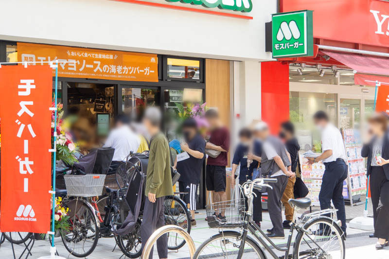 阪急茨木市駅ちかくにつくってた「モスバーガー」がオープンしてる。行列できてた